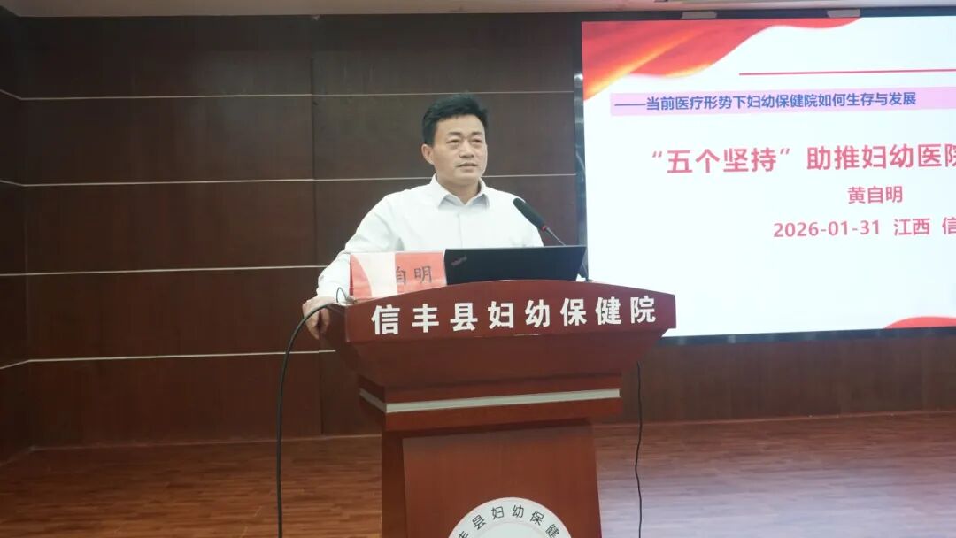 我院党委委员、副院长黄自明以《当前医疗形势下妇幼保健院如何生存与发展》为题,结合当前医疗行业发展趋势和妇幼保健工作实际,深入剖析了新时代妇幼保健院面临的机遇与挑战,围绕学科建设、服务优化、人才培养等方面提出了针对性思路和建议,为我院高质量发展指明了方向。