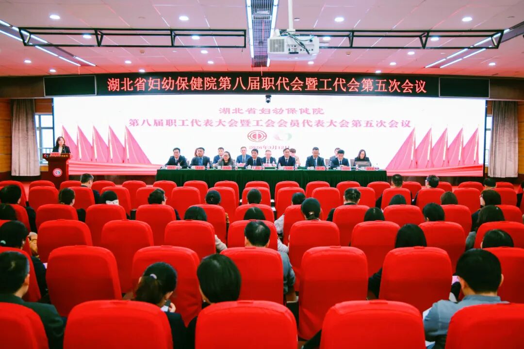 万象更新,聚力启航。2026年3月12日,我院第八届职工代表大会暨工会会员代表大会第五次全体会议在4号楼26楼学术报告厅隆重召开。全院职工代表齐聚一堂,共商医院高质量发展大计,共绘妇幼健康事业新蓝图。会议由工会主席雷新云主持。