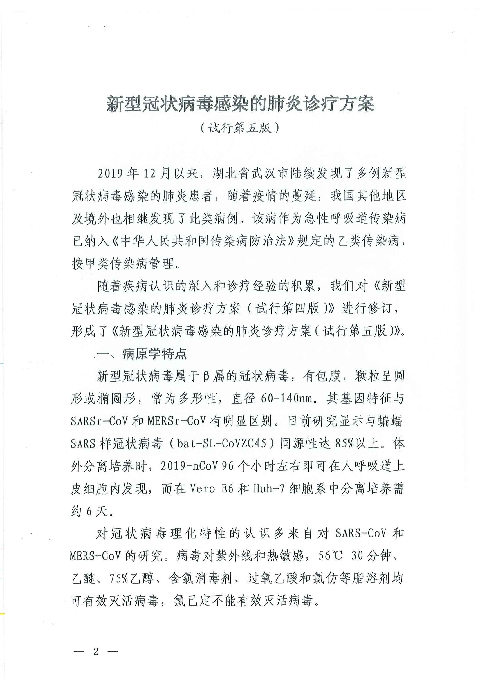 新型冠状病毒感染的肺炎诊疗方案(试行第五版)解读