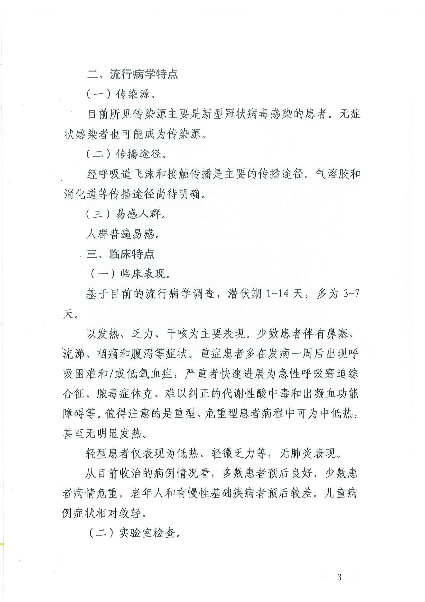 实验室检查增加“部分患者可出现肝酶、LDH、肌酶和肌红蛋白增高;部分危重者可见肌钙蛋白增高。”和“鼻咽拭子、痰、下呼吸道分泌物、血液、粪便等标本中可检测出新型冠状病毒核酸。”