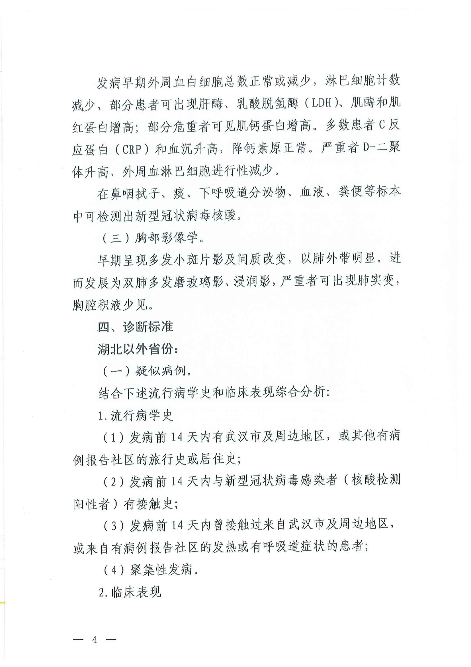 第四,病例诊断根据湖北省和湖北省以外其他省份区别对待。
