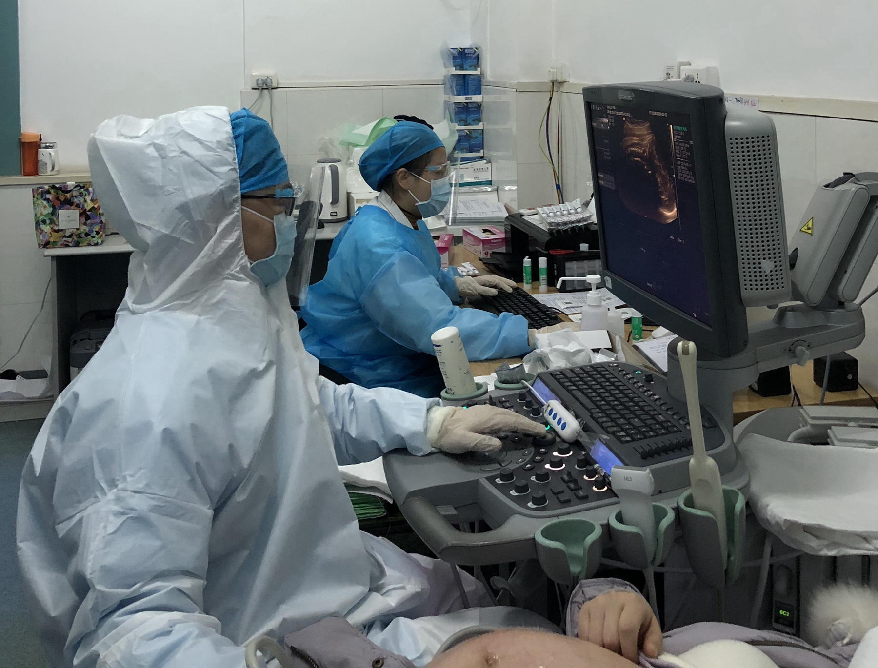 今天算是特别幸福的一天,因为同为医生的孩子爸爸正好休息,可以开车送我上班。疫情期间,上班时间较以前提早一些,因为除了常规穿白大褂,还要穿戴防护装备。超声科上班的医生和护士一天有了一件防护服、三个外科口罩和自备的样式不一的、反复消毒使用的护目镜。防护服又大又长,不透气,从头连着脚。穿戴完毕开始工作,随着做检查的病人数量增多,护目镜起雾变得模糊,帽子上还套着连头防护服,头沉,眼睛花,呼吸也困难了。最艰难的是我开始想上卫生间了,但是想到穿脱防护服麻烦,又增加感染风险,我还是坚持着。