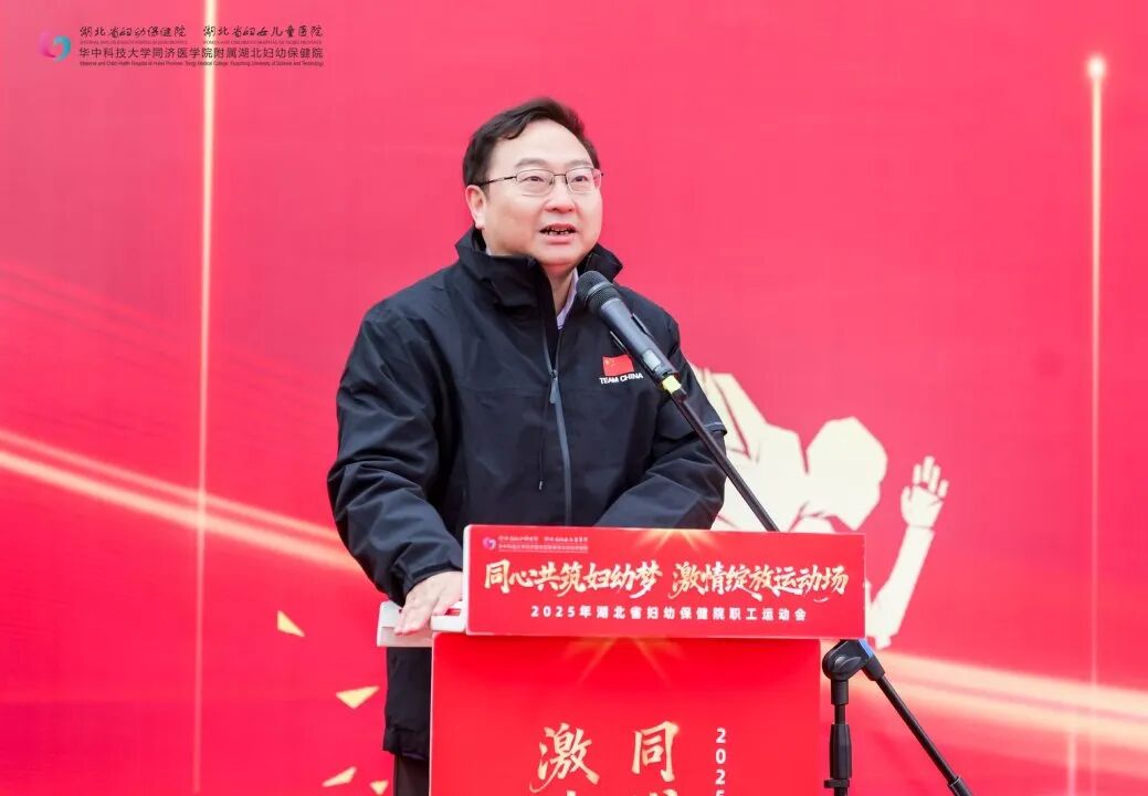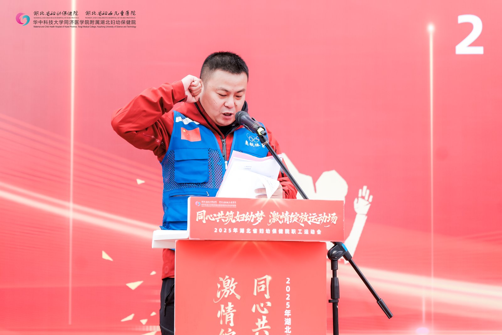 他指出,医院以职工运动会为载体,既是积极响应全民健身国家战略、落实“健康中国2030”规划的具体行动,更是凝聚团队力量、激发队伍活力的生动实践。他希望大家以此次运动会为契机,将赛场上的拼搏激情与坚韧意志转化为强大的工作动力,不断提升医疗服务质量与技术水平,为广大妇女儿童提供更加优质的健康服务,为推进健康湖北建设贡献更大力量。最后,他预祝本次职工运动会圆满成功,并祝愿各位运动员赛出优异成绩、展现医务工作者的良好风采。