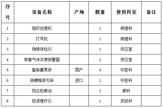 各公司:我院定于10月份对以下设备进行招标,请有意参与投标的公司到设备部登记,并上交相应产品介绍或彩页、生产企业和经销公司证照、销售授权书原件和复印件(原件审查后退还)。